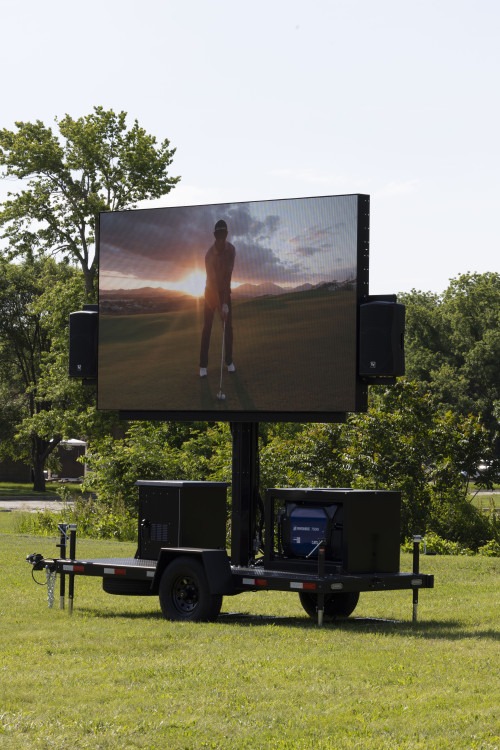 12′ wide by 7′ tall Mobile LED Trailer. The Trailer LED Screen / Mini Jumbotron features a pixel pitch of 3.9mm and can be comfortably viewed from up to 200 feet away and from a 160° angle.